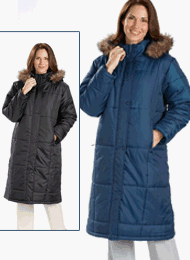 Stop blustery wintry weather cold with this toasty warm, box-quilted coat. It features a roomy silhouette with full zip front, snap storm flap, wind defying stand-up collar, and detachable, faux fur-trimmed hood. Imported in acrylic with cozy polyester lining and two zip pockets. Machine wash.